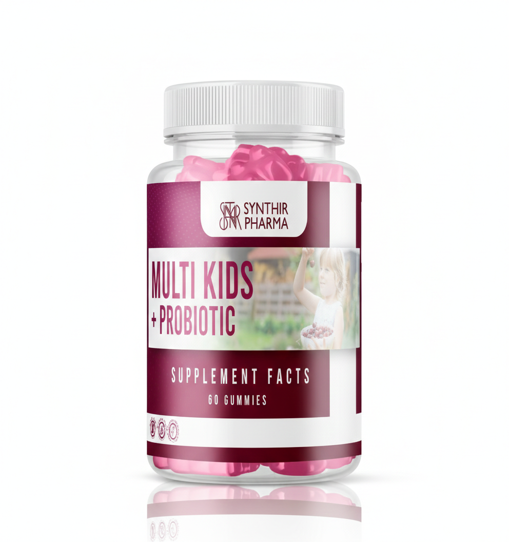 Complete daily nutrition gummies with probiotics to support growth, immunity and digestive balance.